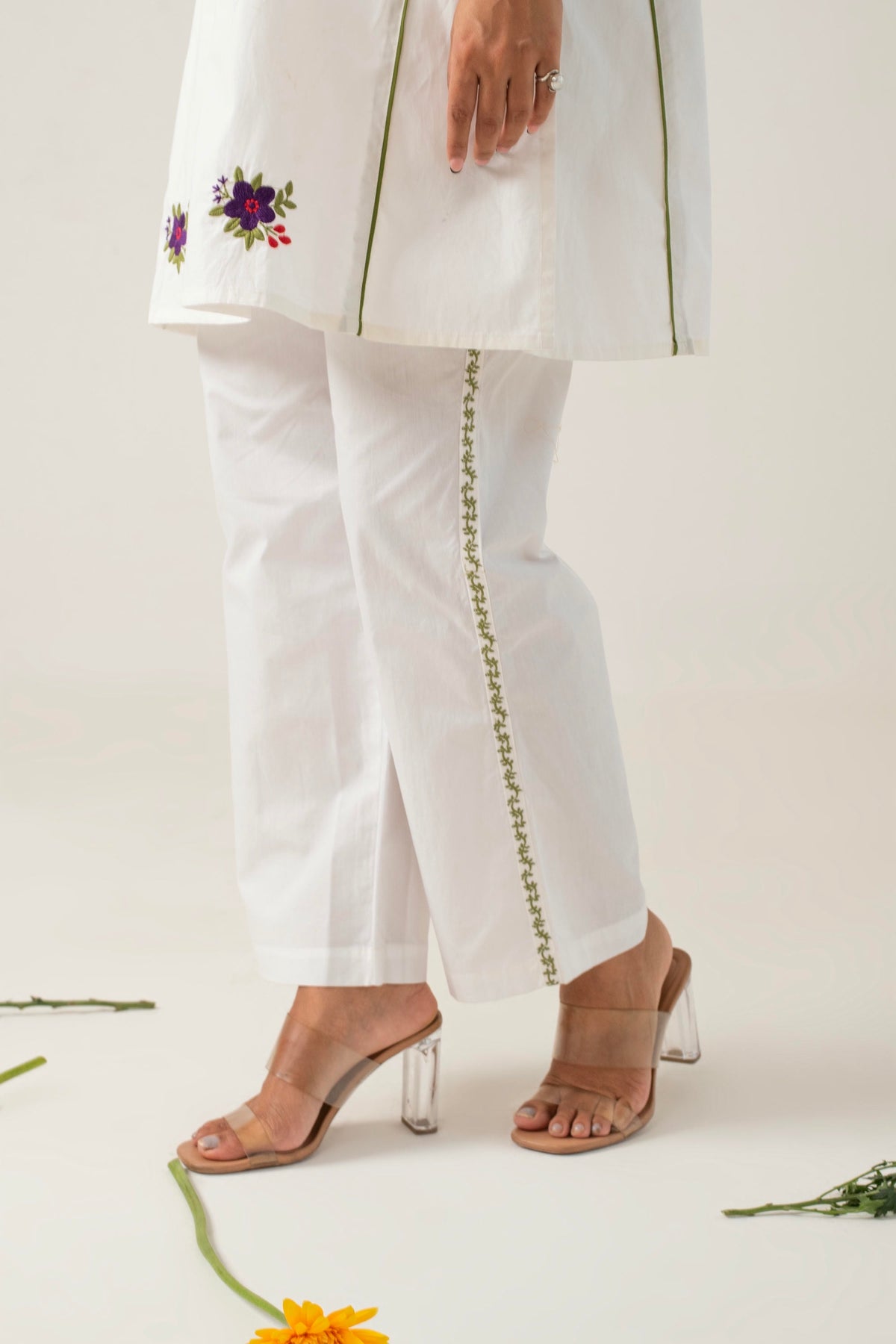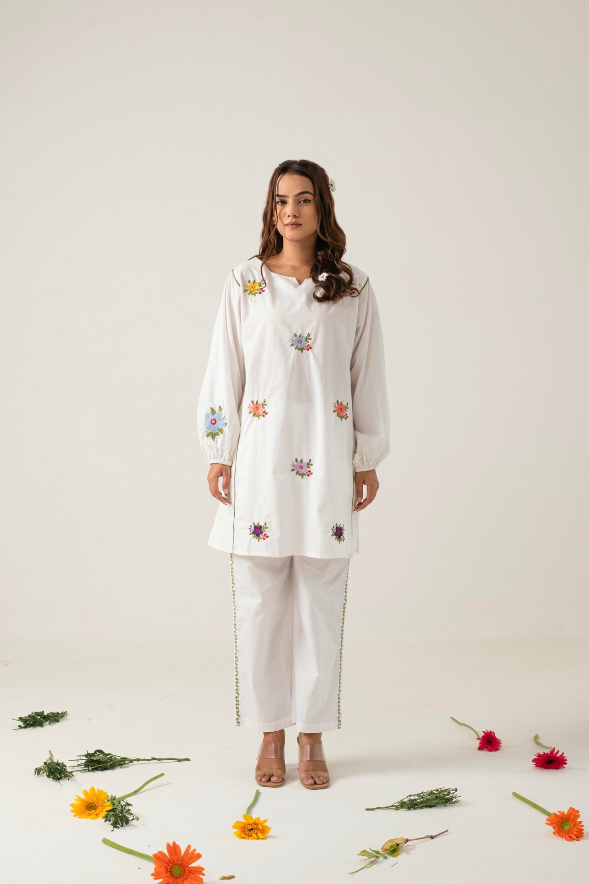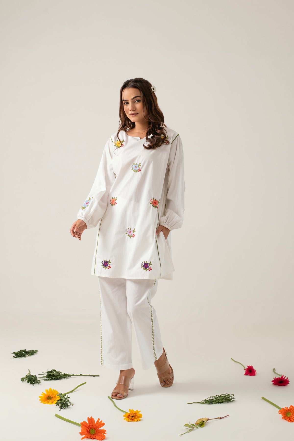 Pair Amba with strappy sandals or simple flats to keep the look relaxed and effortless. Complement the floral motifs with delicate jewelry, such as a dainty bracelet or small earrings, to enhance the ensemble without overpowering it. Whether you're enjoying a day out or attending a casual gathering, Amba ensures you stay stylish and comfortable.